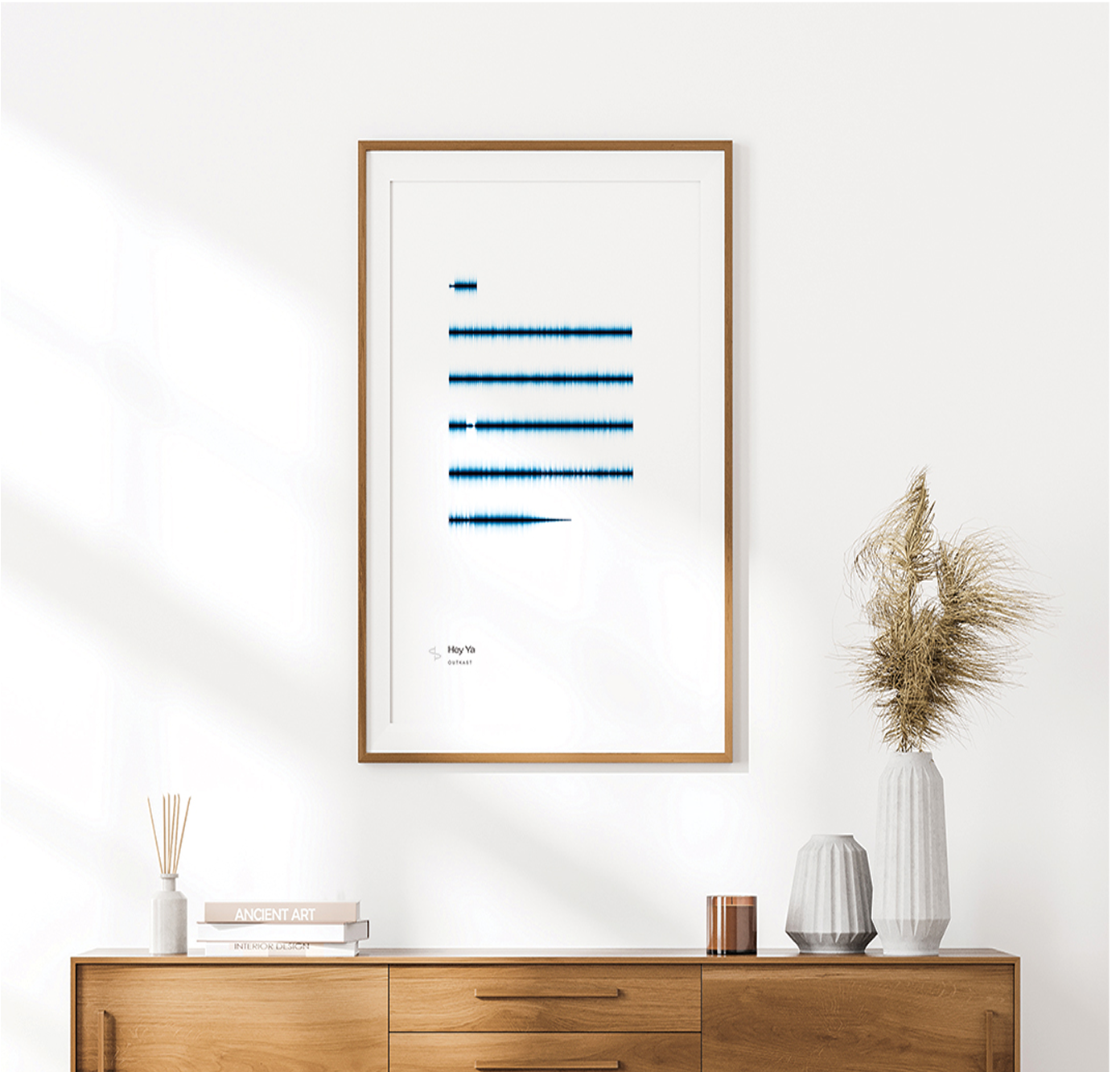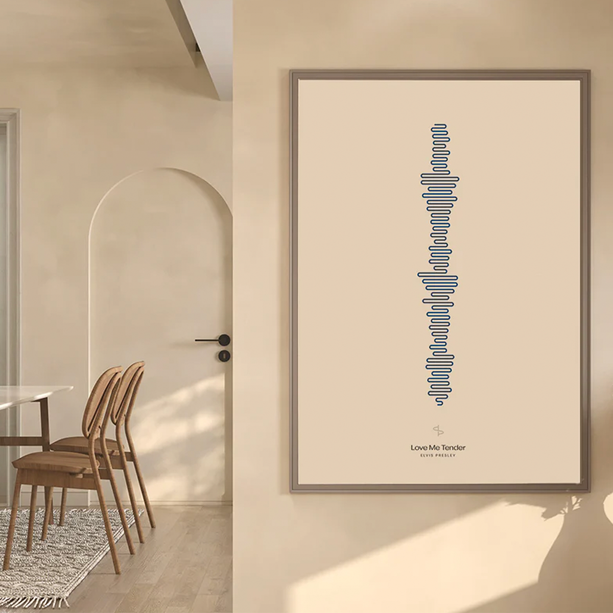 Every sound has a unique soundwave - your favourite song, a special voice note, your baby's heartbeat or dog's bark. Transform any of them into elegant gallery quality wall art in 4 easy steps.